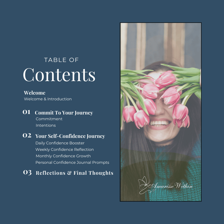 The journal is laid out to help you identify what’s been holding you back, build belief in yourself, and celebrate progress along the way. Each section is a stepping stone toward recognising your worth and living with greater self-assurance.